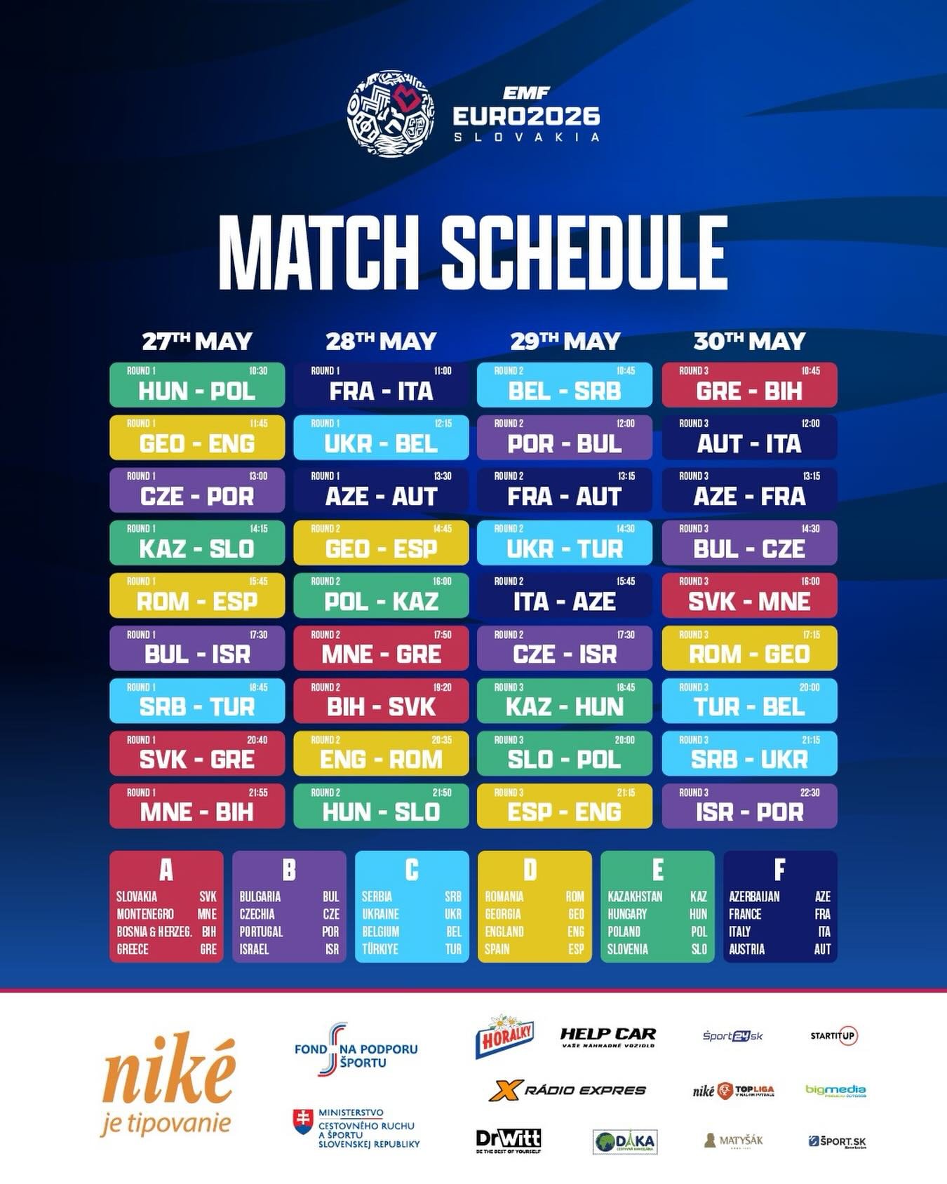 Η πρεμιέρα της Ελλάδας θα πραγματοποιηθεί απέναντι στη διοργανώτρια Σλοβακία, σε μία αναμέτρηση που αναμένεται να διεξαχθεί σε ιδιαίτερα υψηλό επίπεδο έντασης και ενδιαφέροντος. Η εντυπωσιακή “Tipos Arena” αναμένεται να φιλοξενήσει περισσότερους από 10.000 θεατές, δημιουργώντας ένα απαιτητικό αγωνιστικό περιβάλλον, ενώ ιδιαίτερα σημαντική αναμένεται να είναι και η παρουσία Ελλήνων φιλάθλων, οι οποίοι θα στηρίξουν την προσπάθεια της ομάδας. Η συγκεκριμένη αναμέτρηση συνιστά μία σημαντική αγωνιστική και οργανωτική εμπειρία για την Ελλάδα σε επίπεδο διεθνών διοργανώσεων.